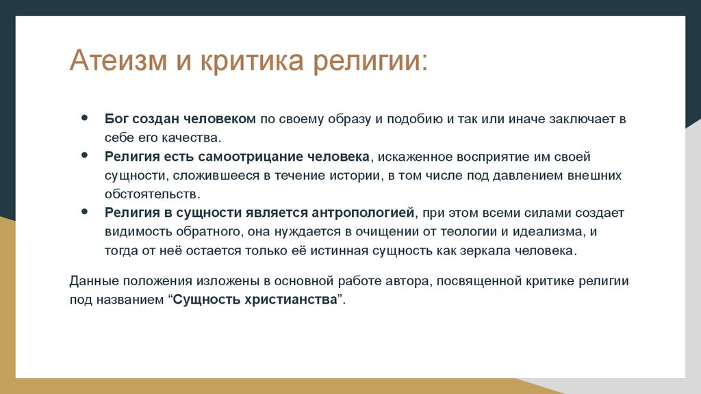 Данные положения изложены в основной работе автора, посвященной критике религии