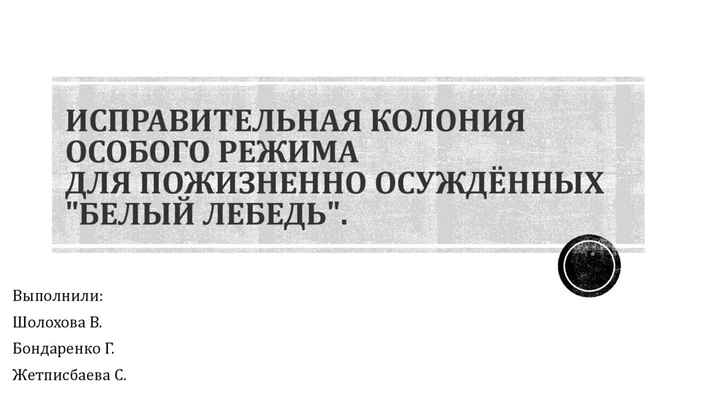 1. исправительная колония особого режима для пожизненно осуждённых "Белый лебедь".