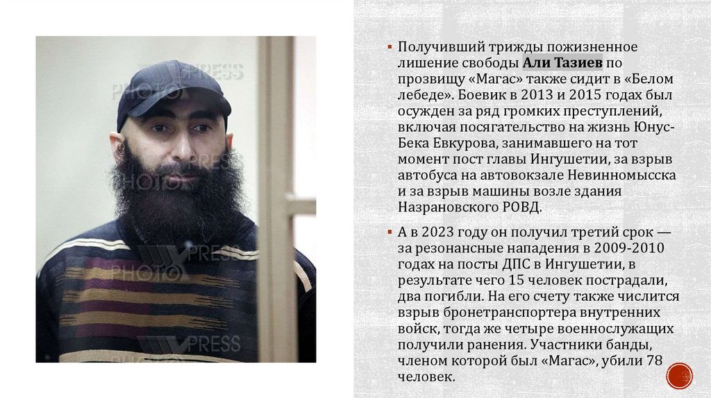 7. По каким обвинениям и сколько заключенных сидит в «Белом лебеде»