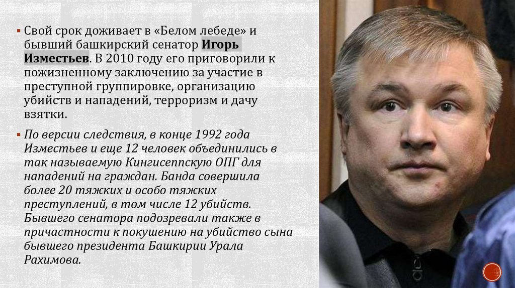 Свой срок доживает в «Белом лебеде» ибывший башкирский сенатор Игорь