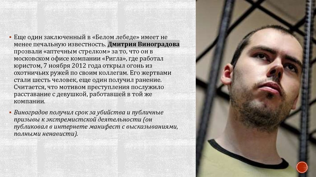 Еще один заключенный в «Белом лебеде» имеет неменее печальную известность. Дмитрия Виноградова