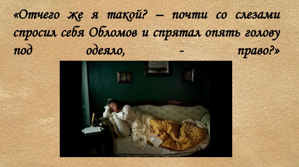 «Отчего же я такой? – почти со слезамиспросил себя Обломов и спрятал опять голову