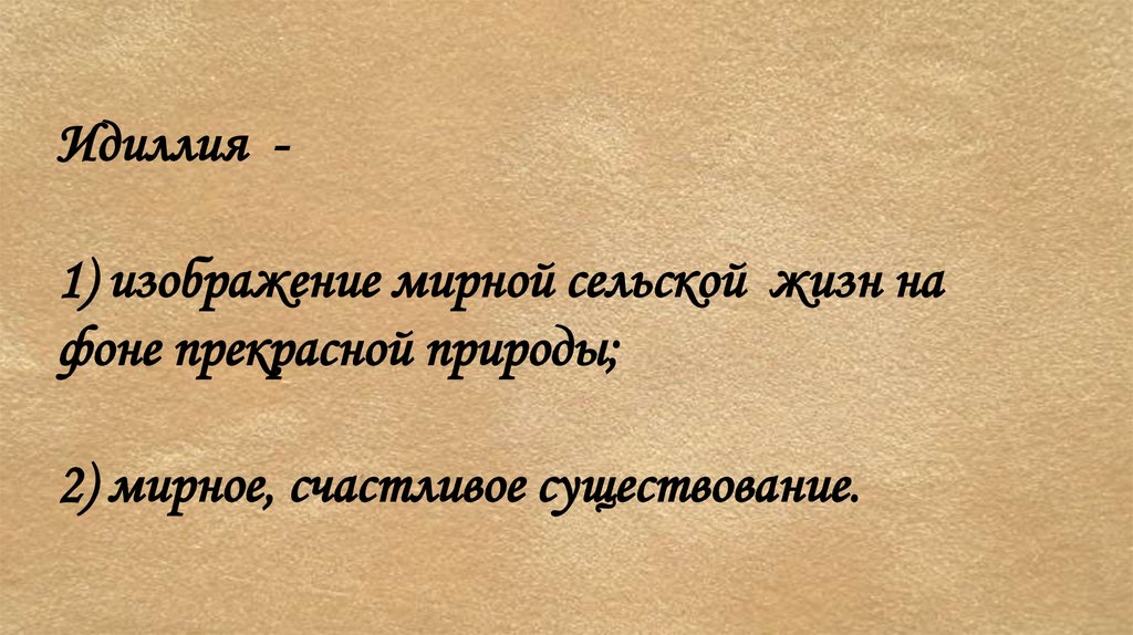 Идиллия 1) изображение мирной сельской жизн нафоне прекрасной природы;