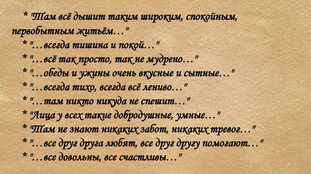 * "Там всё дышит таким широким, спокойным,первобытным житьём…"