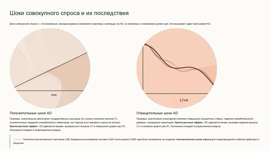 Пример: Политика количественного смягчения (QE) Федеральной резервной системы США после кризиса 2008 года была направлена на создание положительного шока спроса для предотвращения глубокой дефляции и