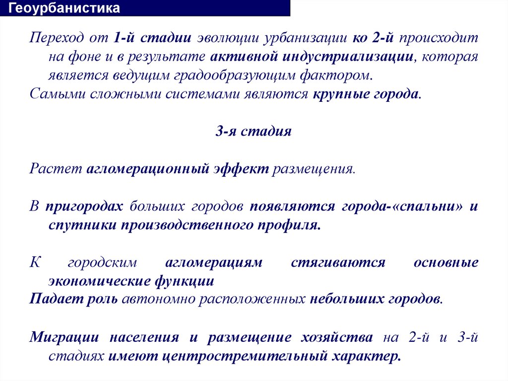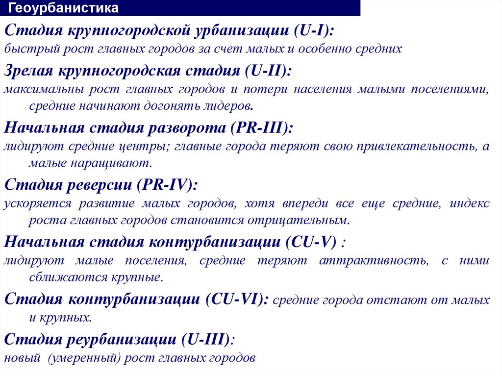 2. Как всякий всемирно-исторический процесс, урбанизация проходит в своем развитии ряд последовательных стадий. Или, иначе говоря,