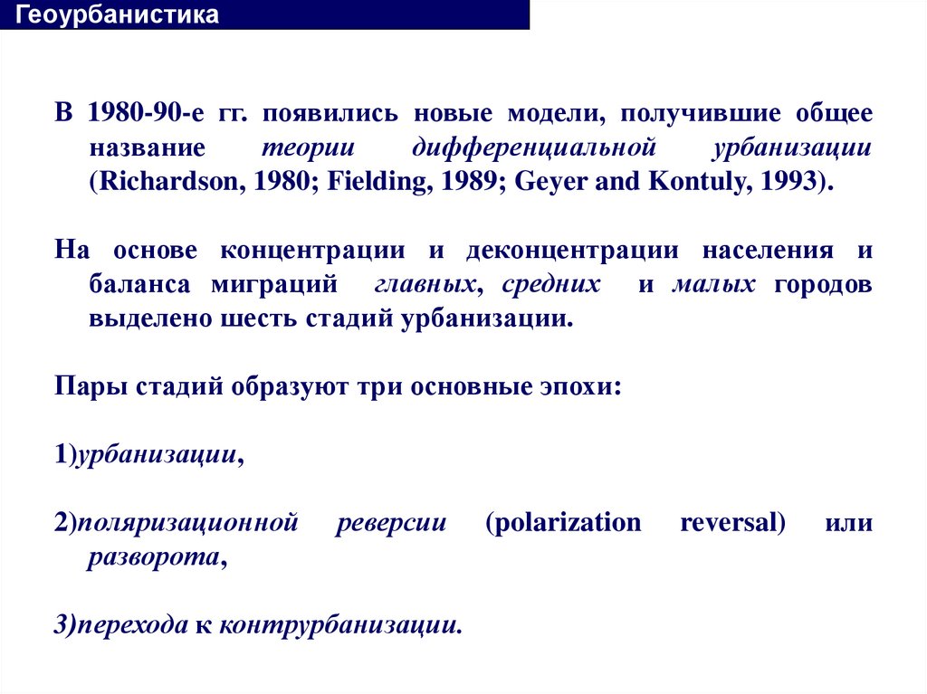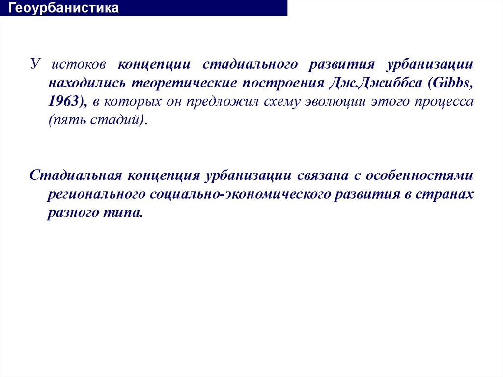 ГеоурбанистикаУ истоков концепции стадиального развития урбанизации