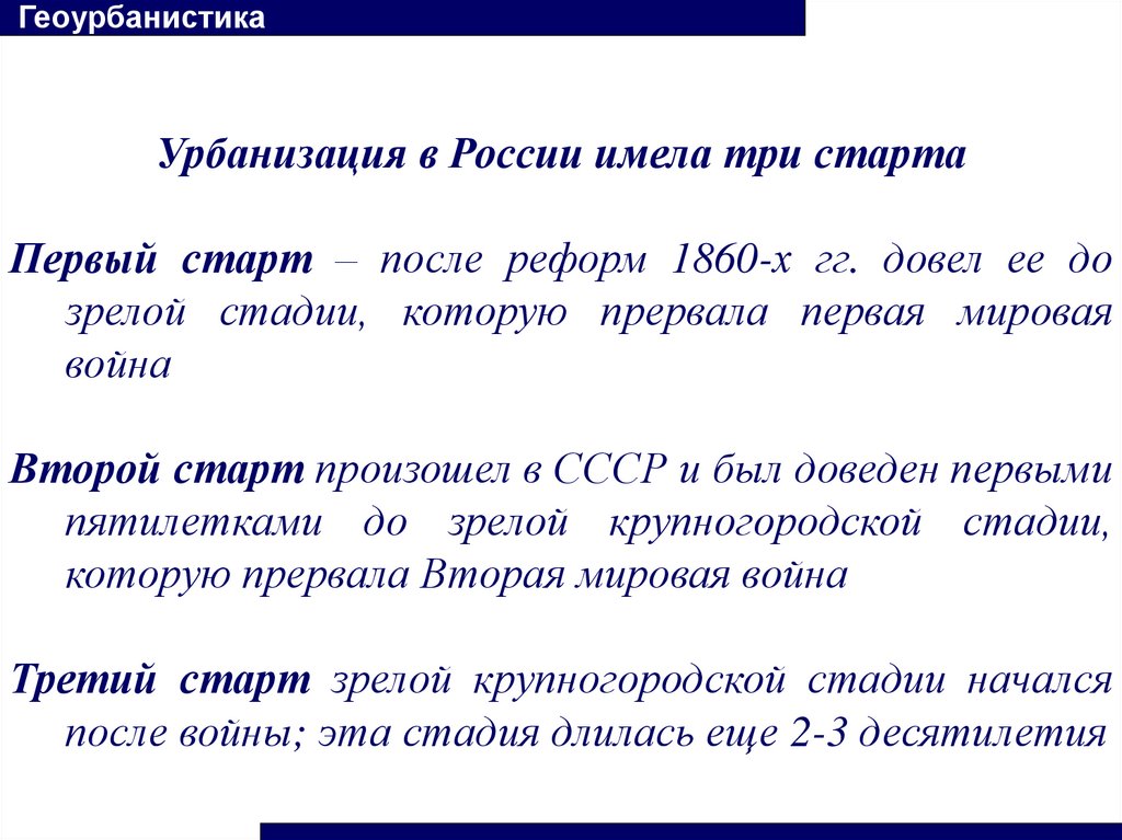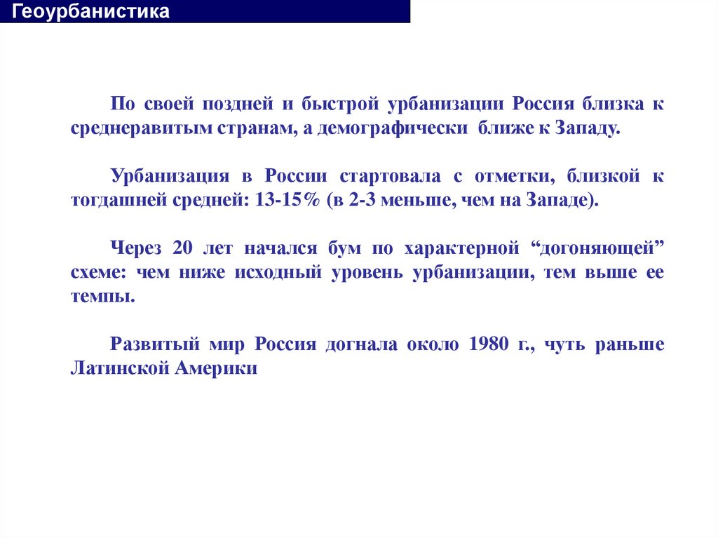 ГеоурбанистикаПо своей поздней и быстрой урбанизации Россия близка к