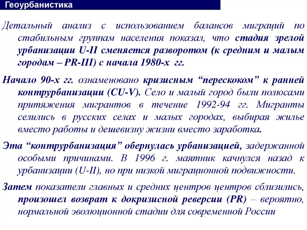 урбанизации (U-II), но при низкой миграционной подвижности.