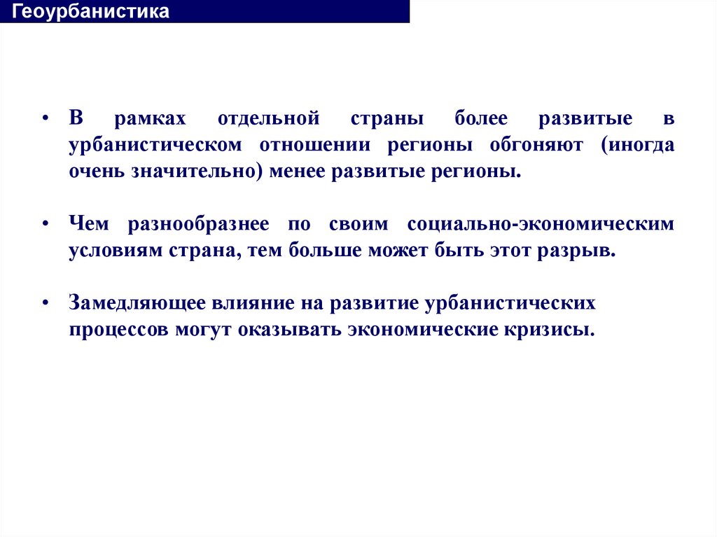 Геоурбанистика• В рамках отдельной страны более развитые в
