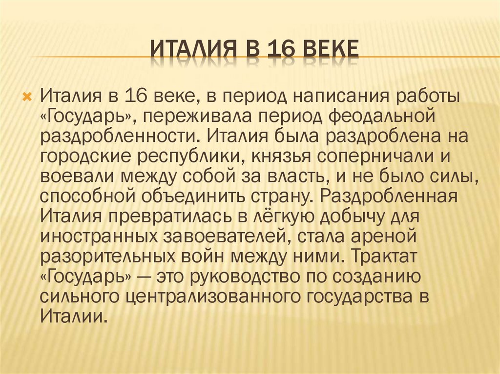 ИТАЛИЯ В 16 ВЕКЕИталия в 16 веке, в период написания работы