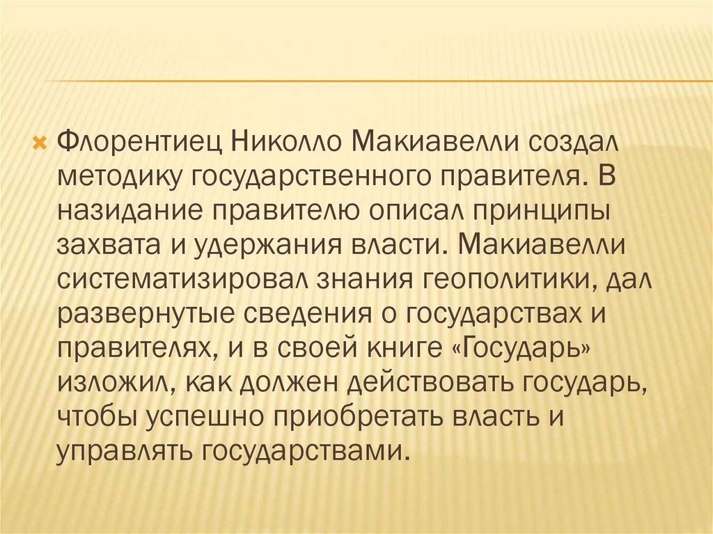 Флорентиец Николло Макиавелли создалметодику государственного правителя. В
