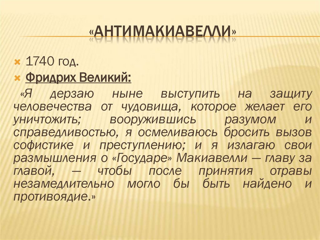 «АНТИМАКИАВЕЛЛИ»1740 год.