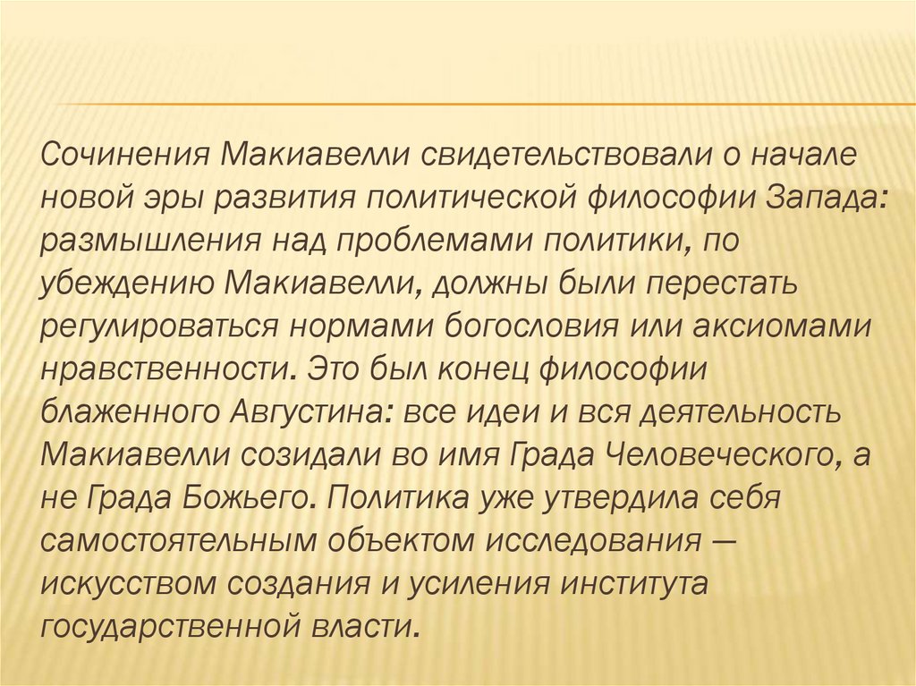 Сочинения Макиавелли свидетельствовали о началеновой эры развития политической философии Запада:
