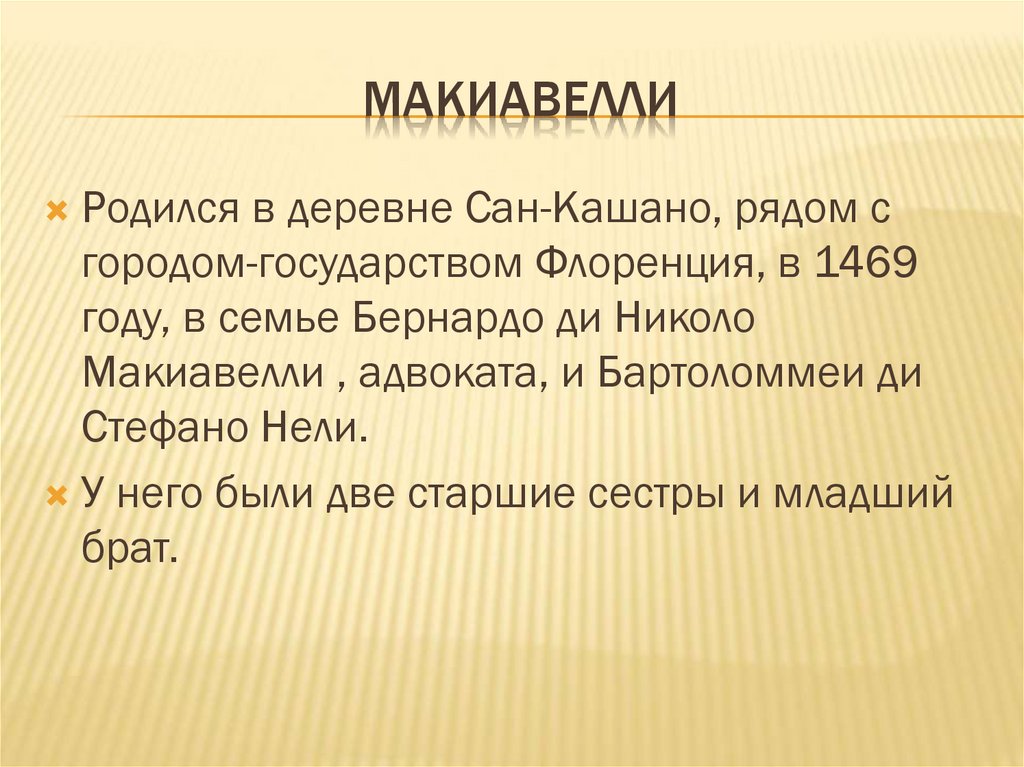 МАКИАВЕЛЛИРодился в деревне Сан-Кашано, рядом с