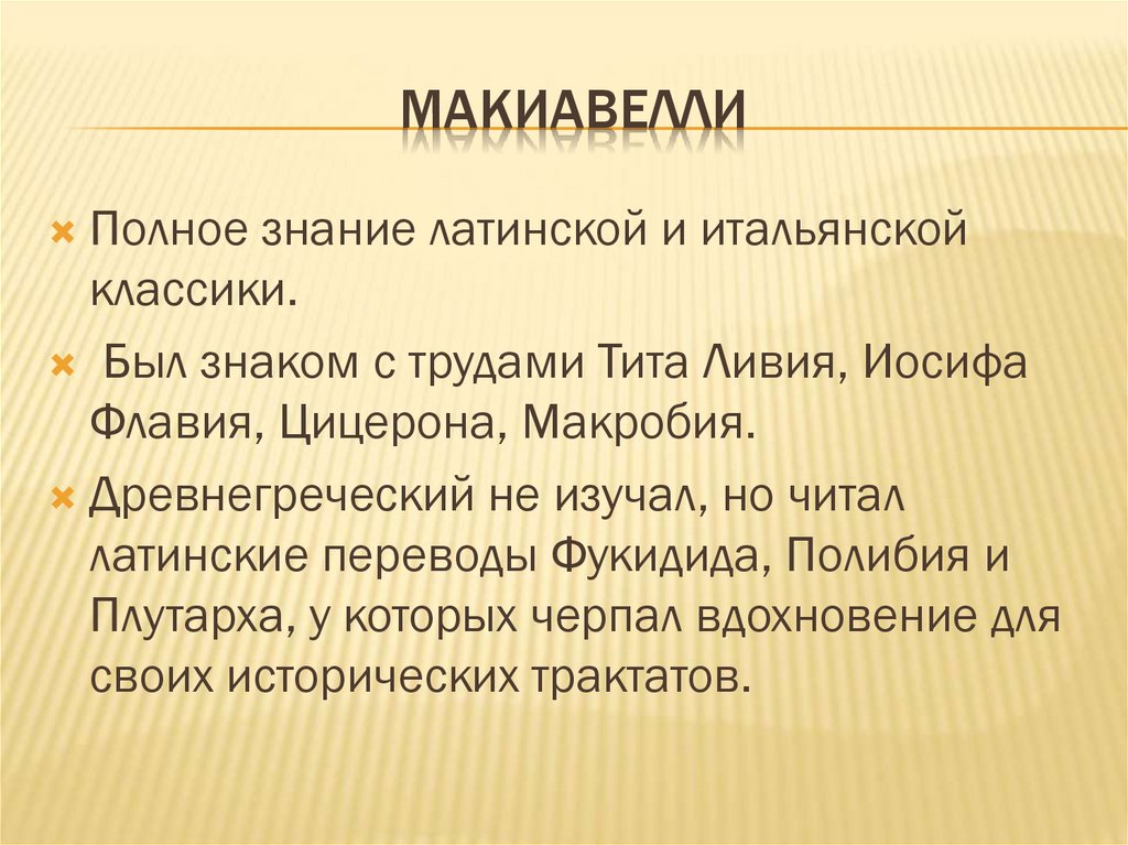 МАКИАВЕЛЛИПолное знание латинской и итальянской