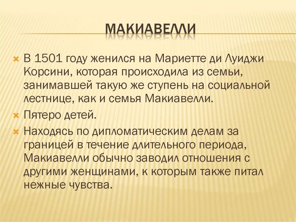 Макиавелли обычно заводил отношения с