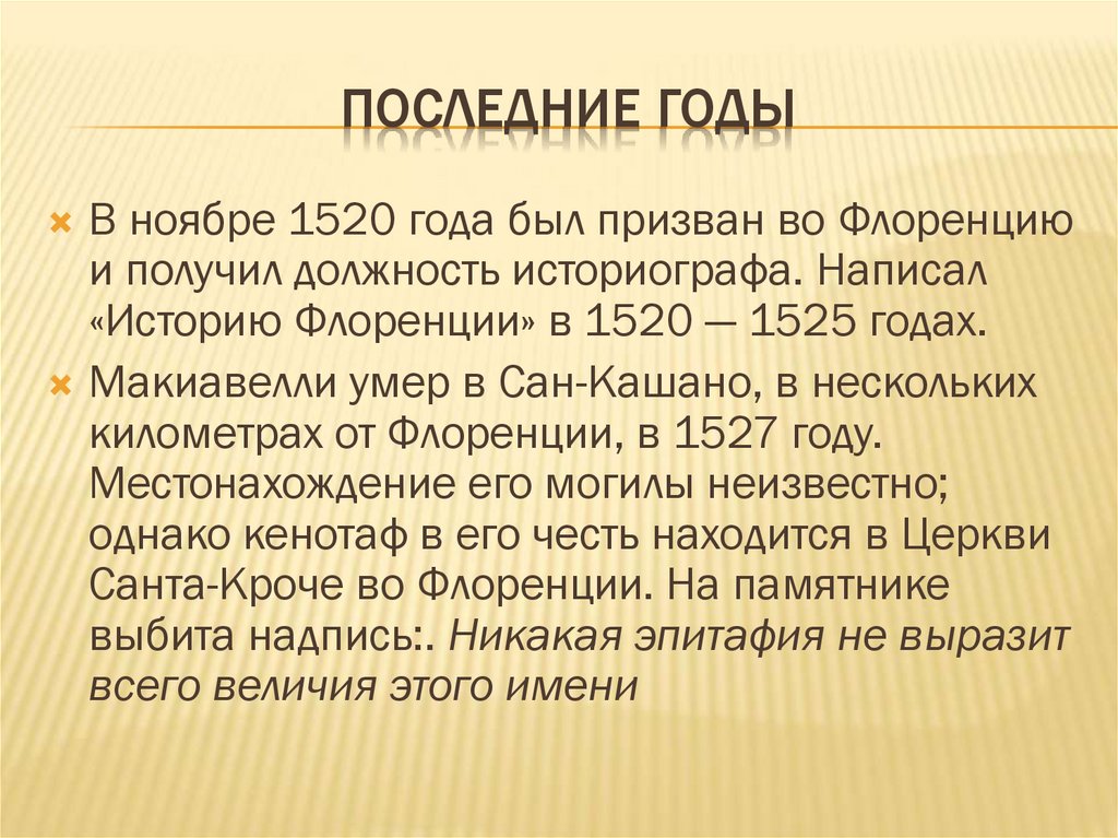 «Историю Флоренции» в 1520 — 1525 годах.
