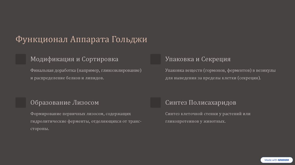 Функционал Аппарата ГольджиМодификация и Сортировка