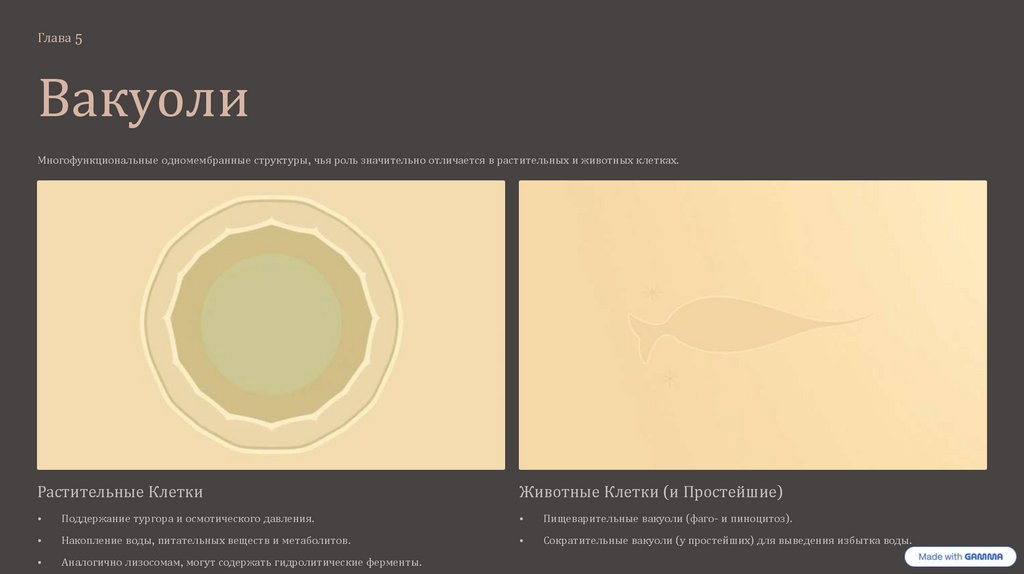 Многофункциональные одномембранные структуры, чья роль значительно отличается в растительных и животных клетках.