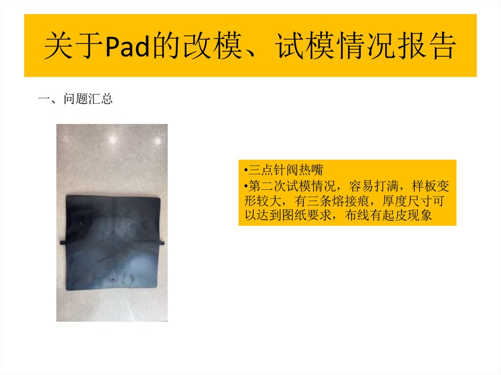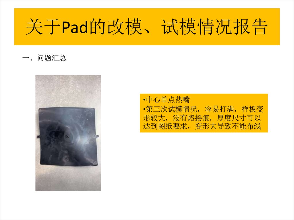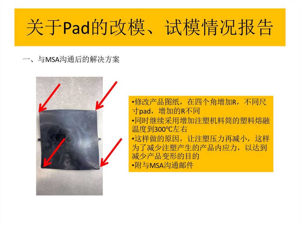 关于Pad的改模、试模情况报告一、与MSA沟通后的解决方案