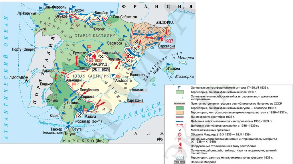 • Май 1937 – восстание в Барселоне• Февраль 1939 – захват Каталонии