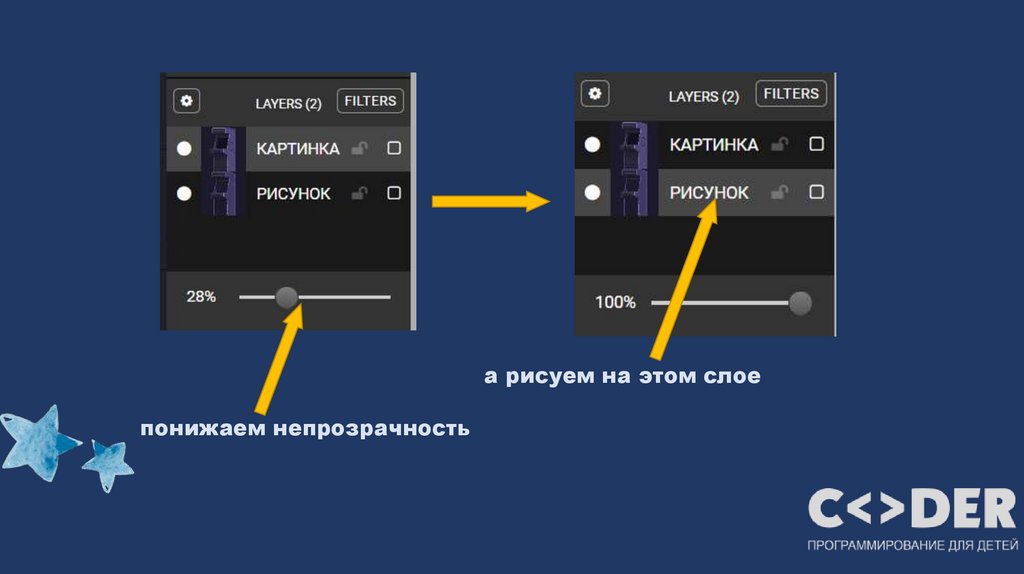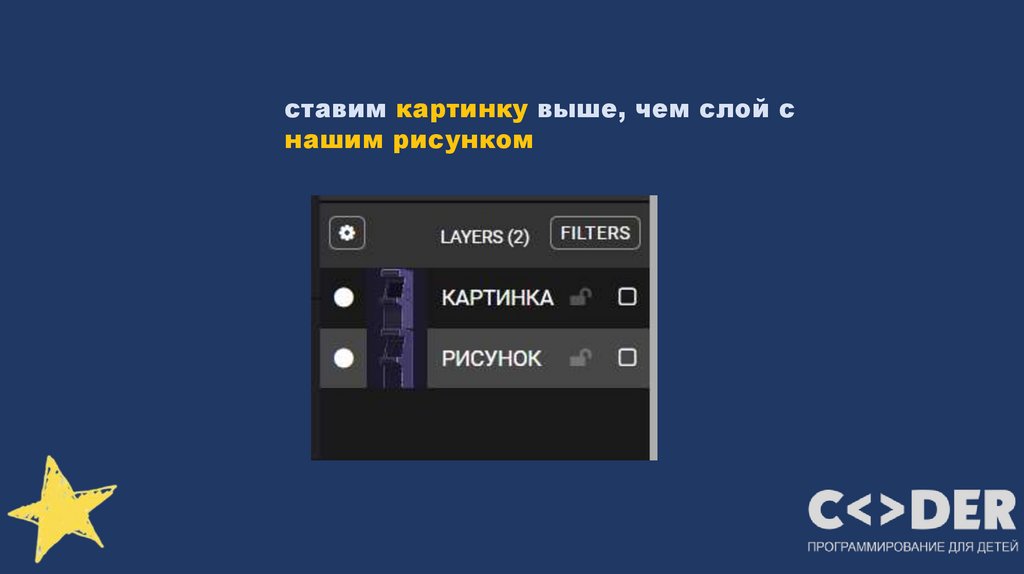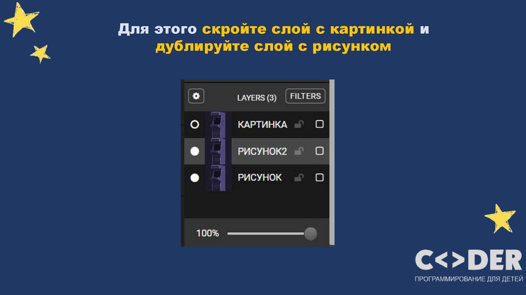 Для этого скройте слой с картинкой идублируйте слой с рисунком