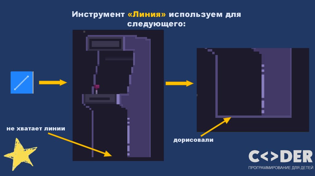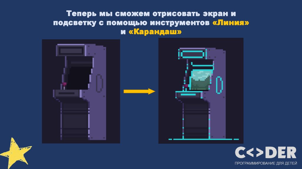 Теперь мы сможем отрисовать экран иподсветку с помощью инструментов «Линия»