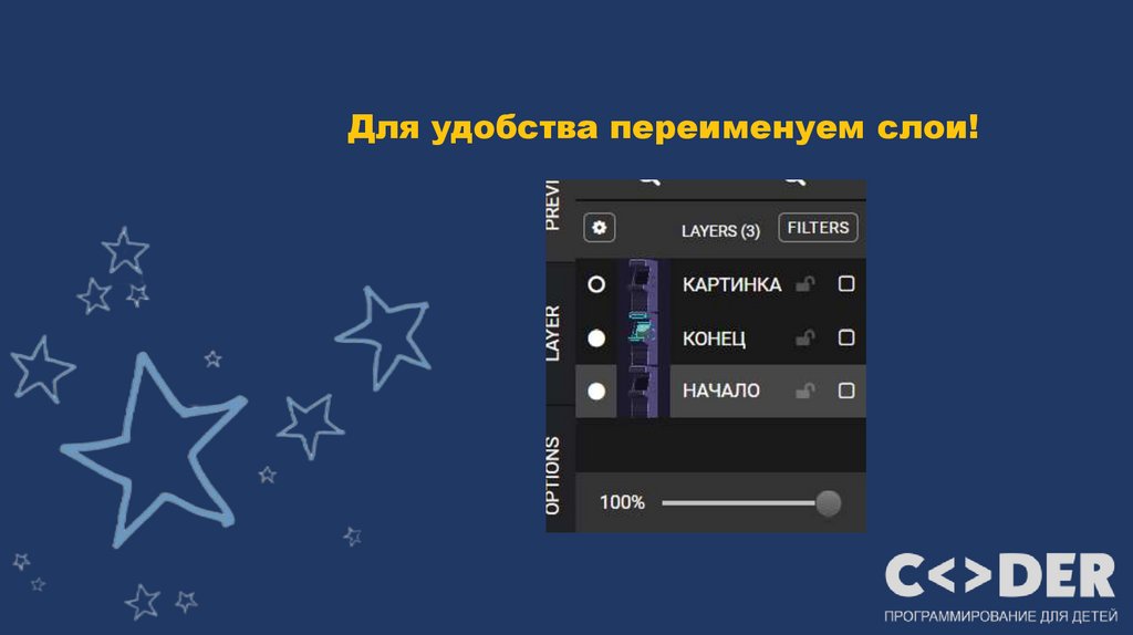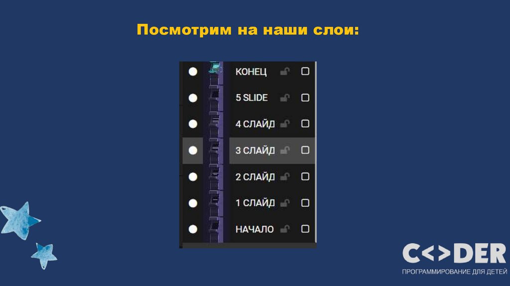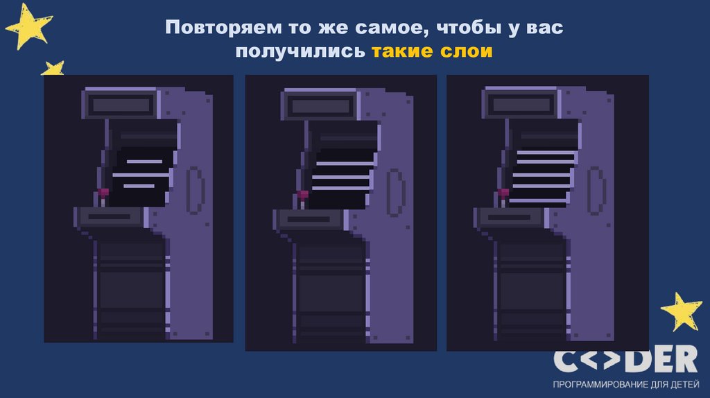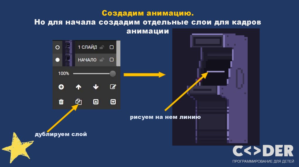 Создадим анимацию.Но для начала создадим отдельные слои для кадров