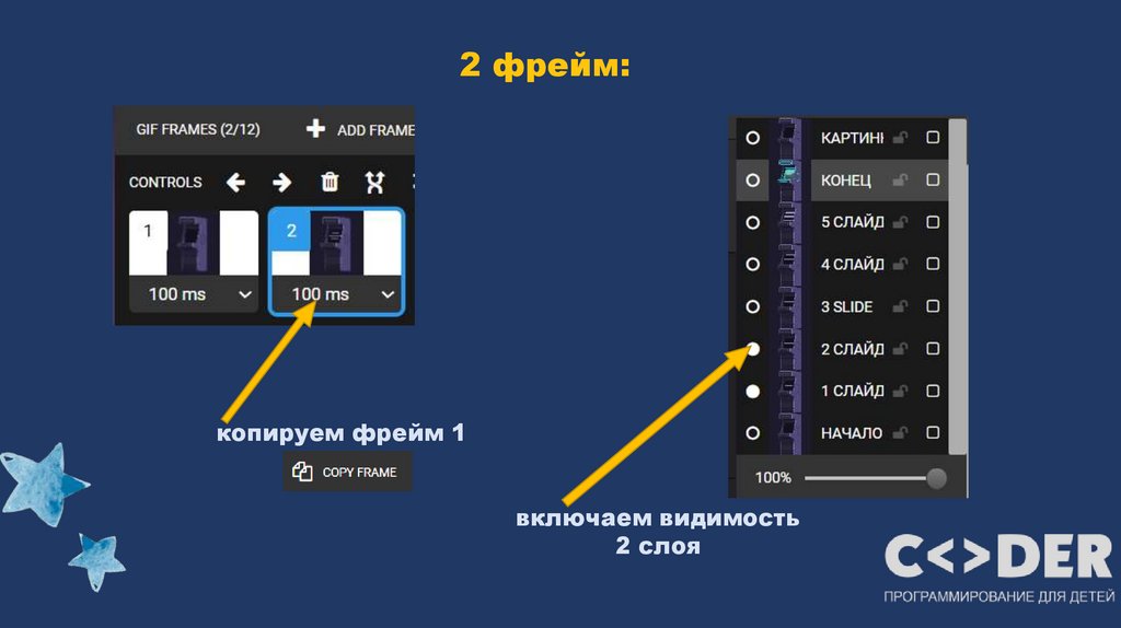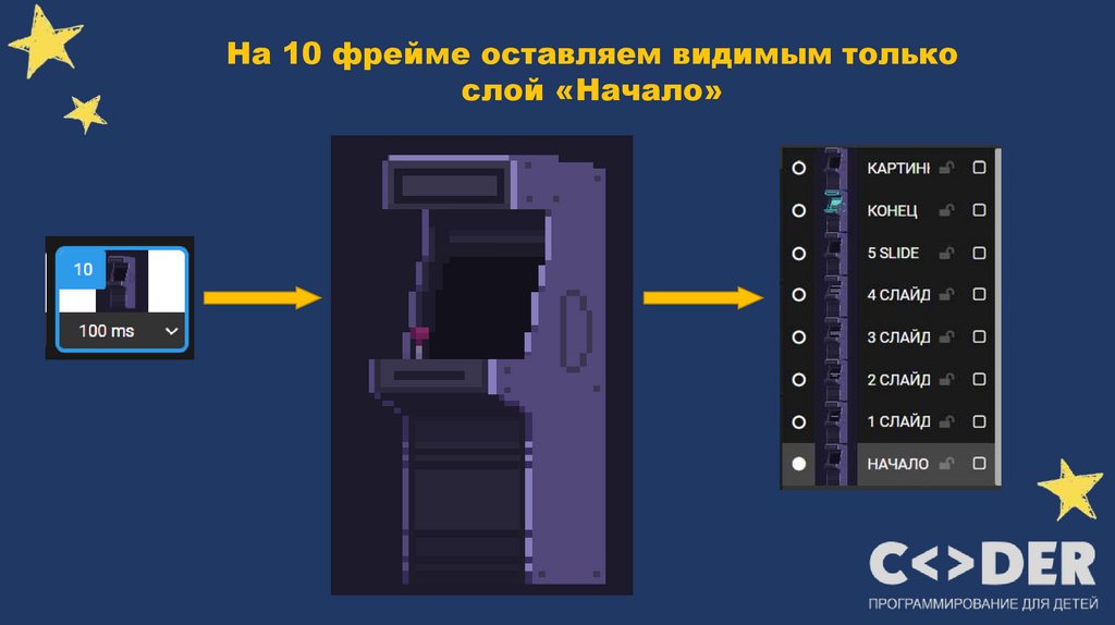 На 10 фрейме оставляем видимым толькослой «Начало»