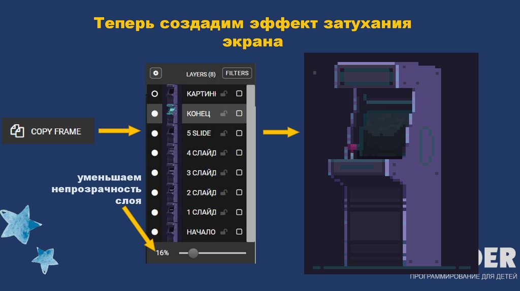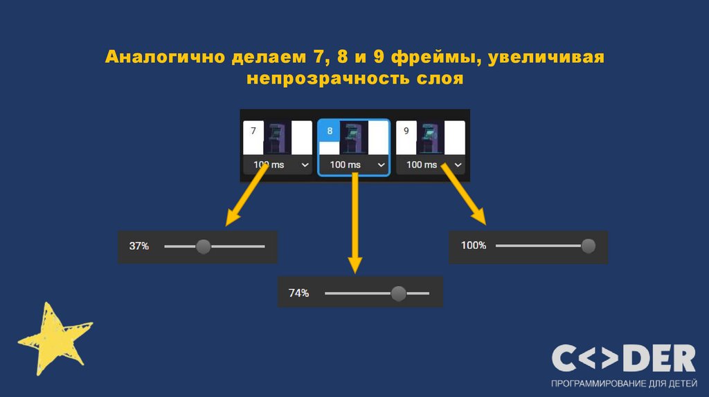 Аналогично делаем 7, 8 и 9 фреймы, увеличиваянепрозрачность слоя