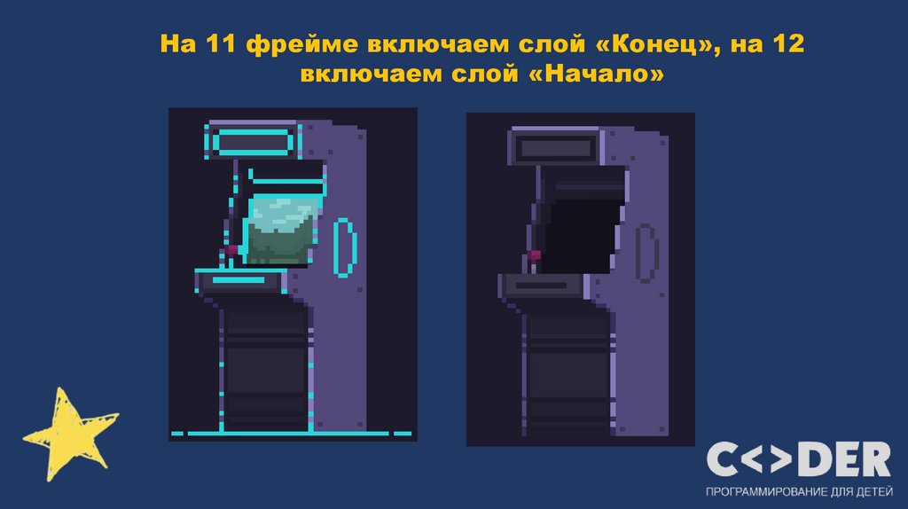 На 11 фрейме включаем слой «Конец», на 12включаем слой «Начало»