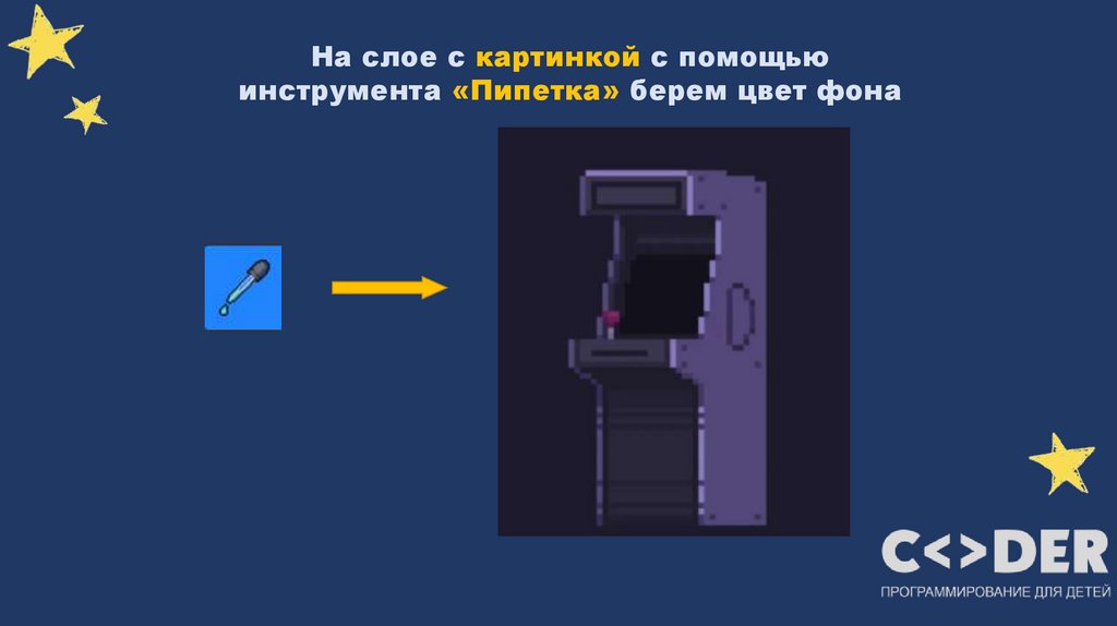 На слое с картинкой с помощьюинструмента «Пипетка» берем цвет фона