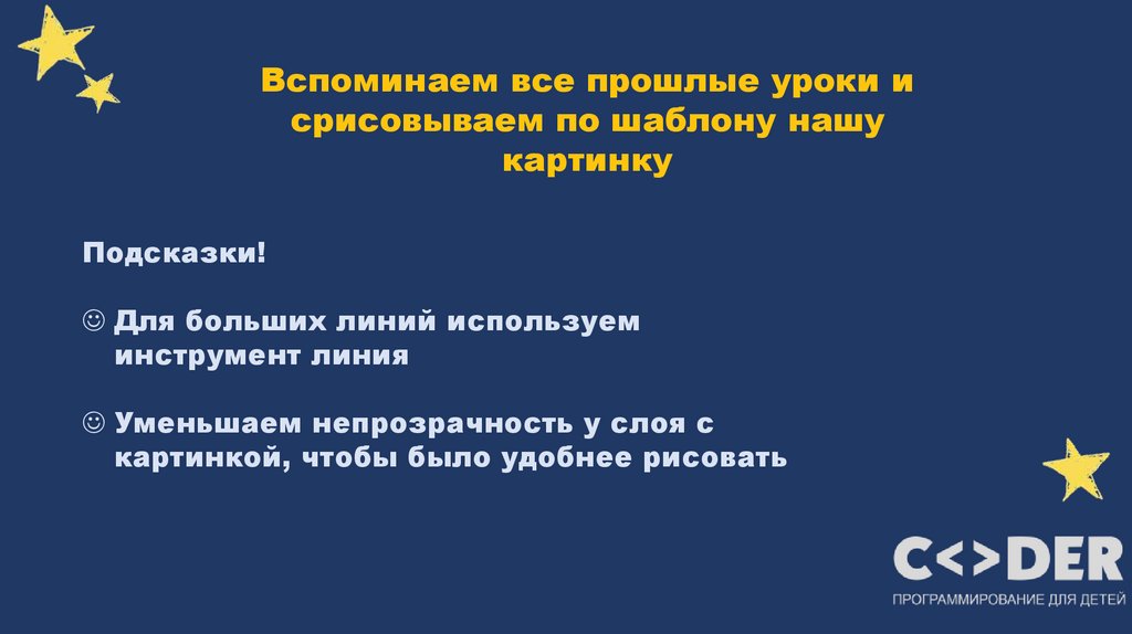 Вспоминаем все прошлые уроки исрисовываем по шаблону нашу