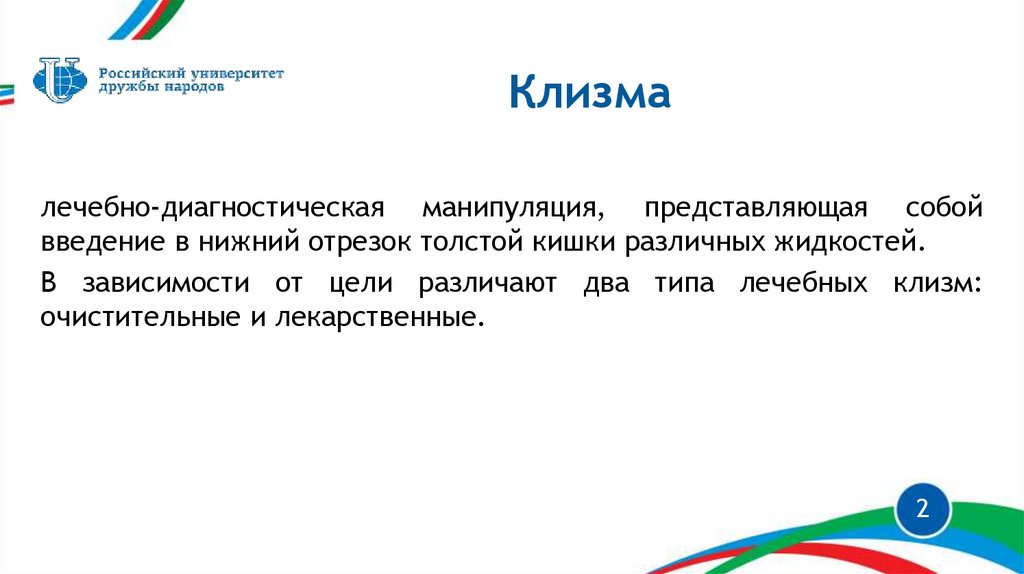 Клизмалечебно-диагностическая манипуляция, представляющая собой