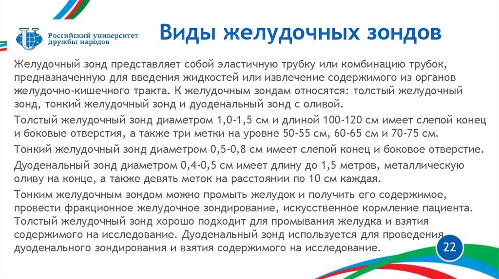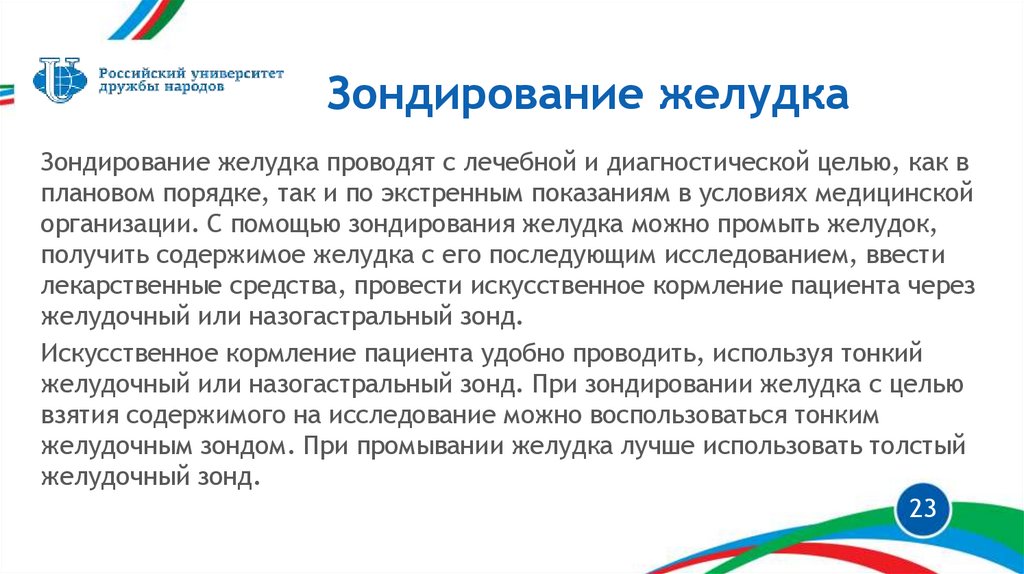 желудочный или назогастральный зонд. При зондировании желудка с целью