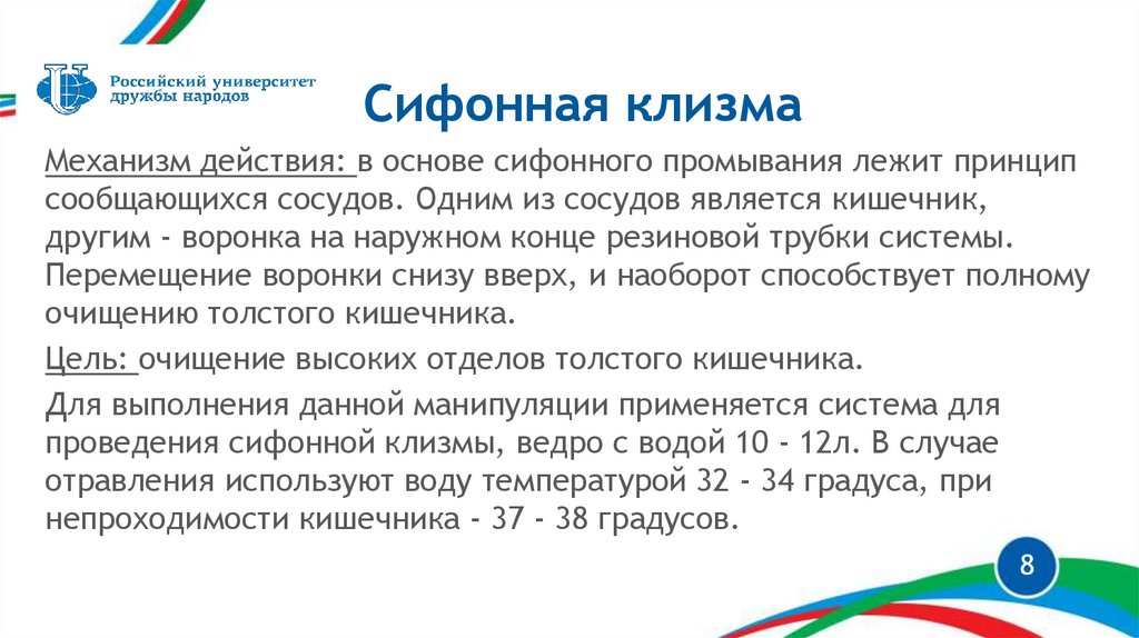 Сифонная клизмаМеханизм действия: в основе сифонного промывания лежит принцип
