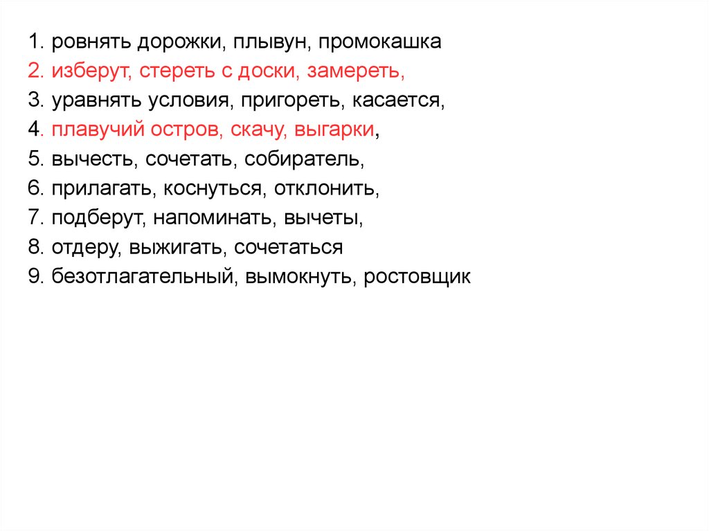 7. вы...ший суд, ре...кий запах, подска...ка,