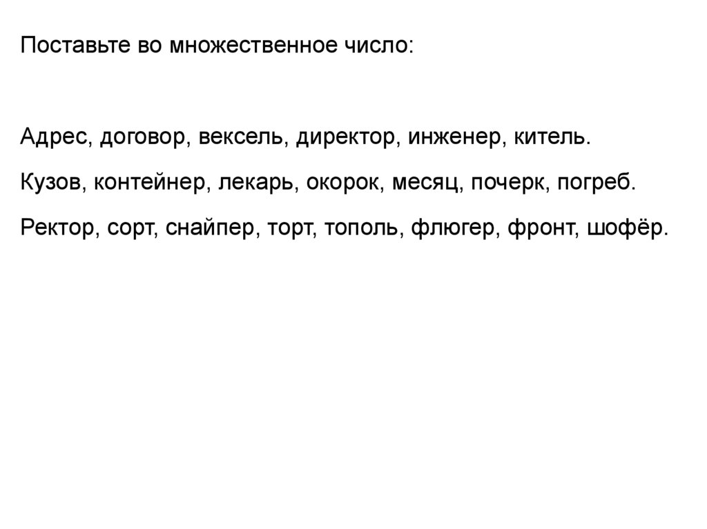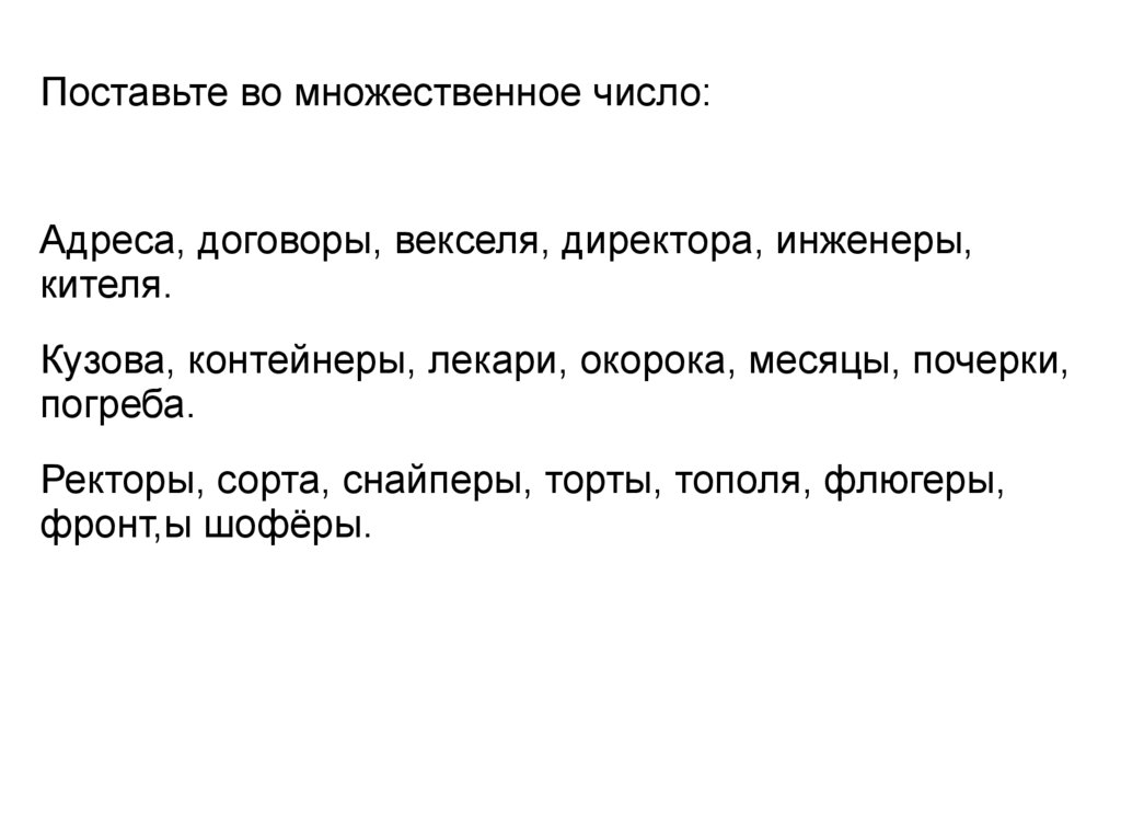 Поставьте во множественное число:Адреса, договоры, векселя, директора, инженеры,