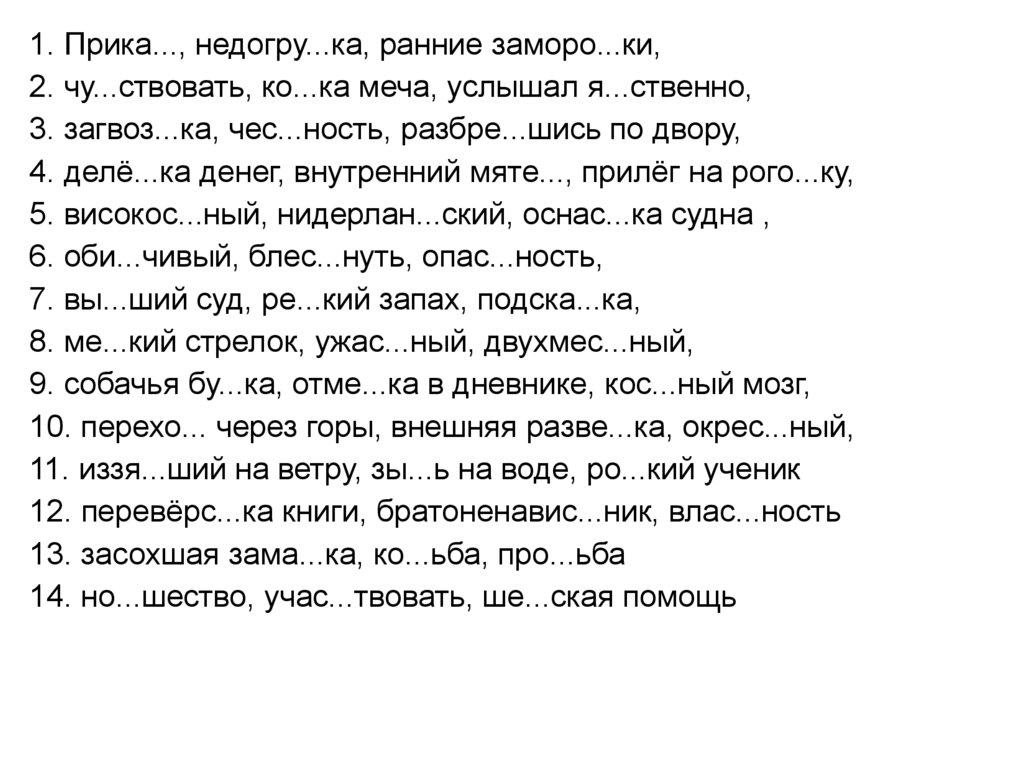 8. ме...кий стрелок, ужас...ный, двухмес...ный,