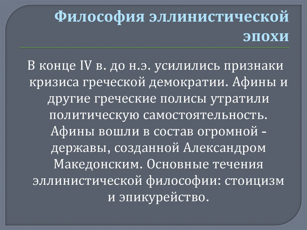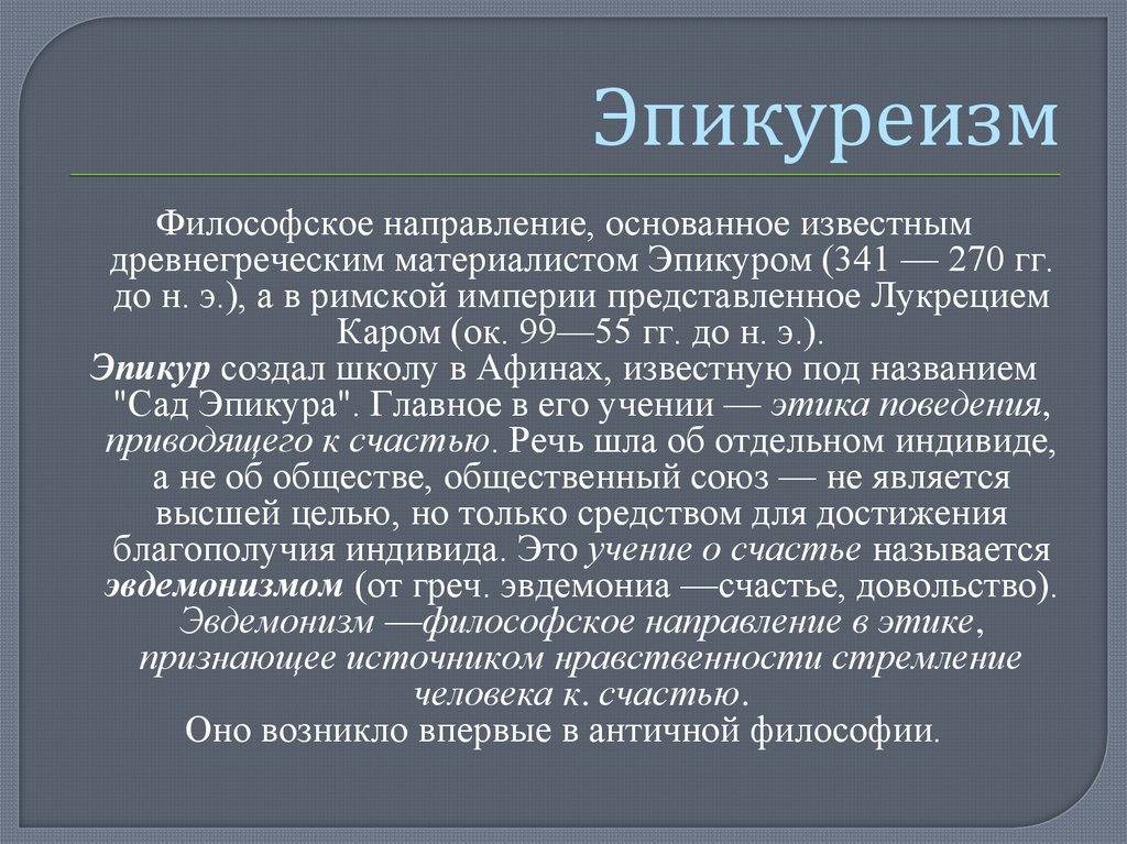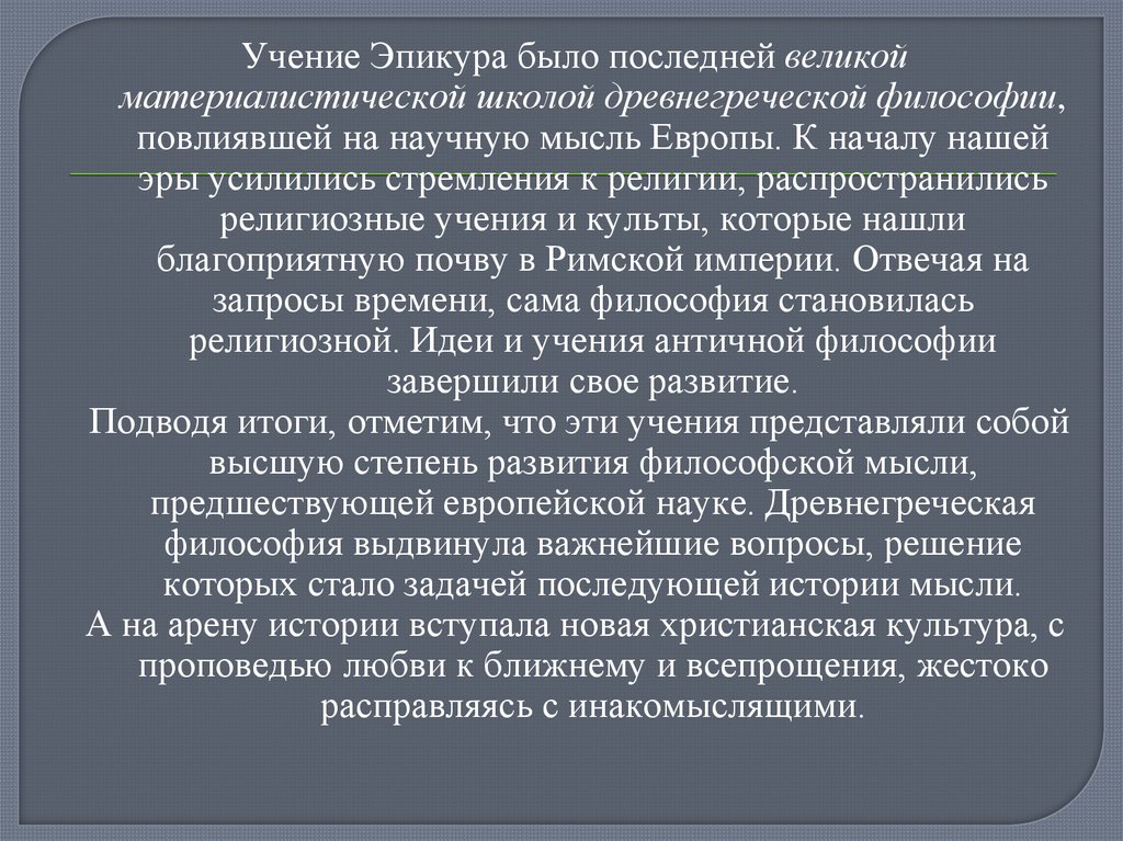 Учение Эпикура было последней великойматериалистической школой древнегреческой философии,