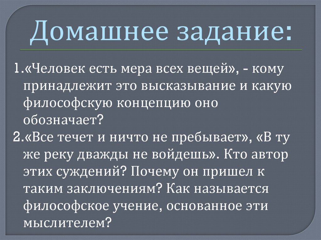 Домашнее задание:1.«Человек есть мера всех вещей», - кому