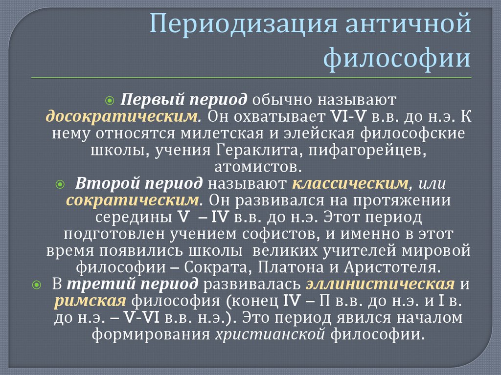 досократическим. Он охватывает VI-V в.в. до н.э. К