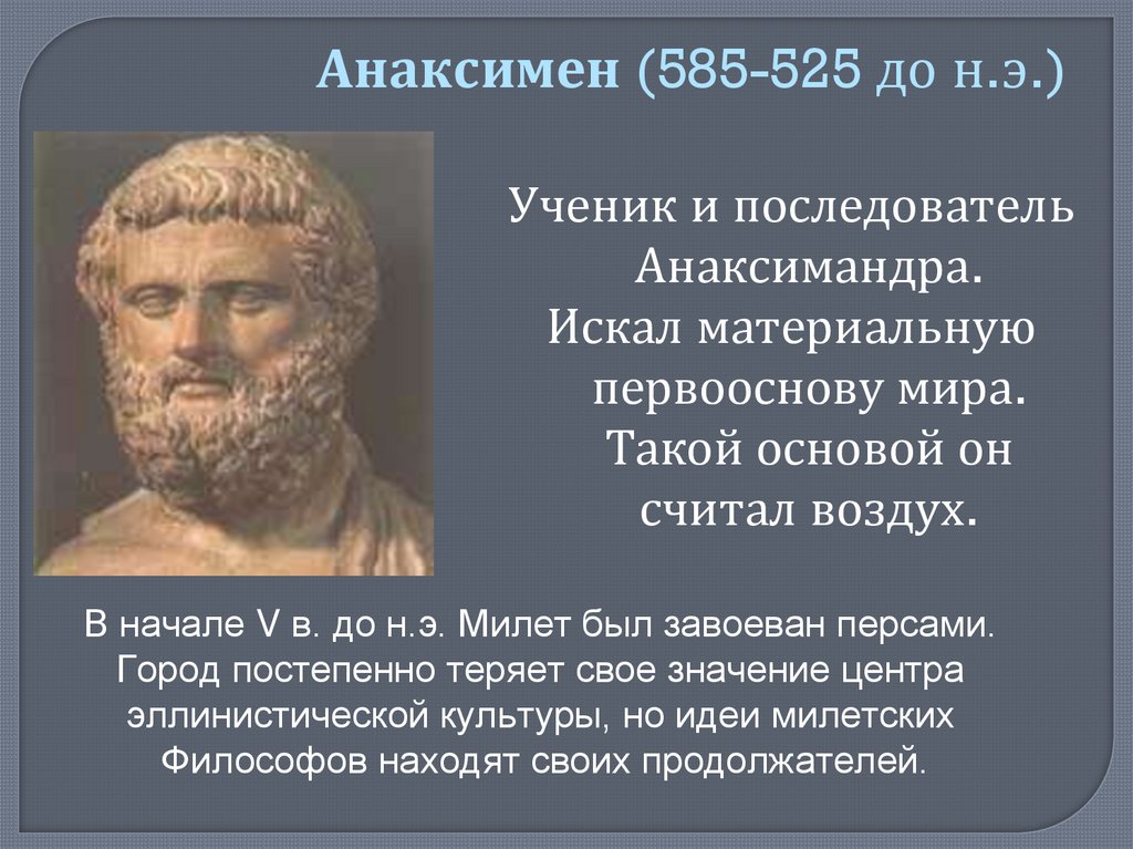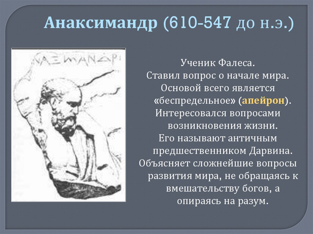 Анаксимандр (610-547 до н.э.)Ученик Фалеса.