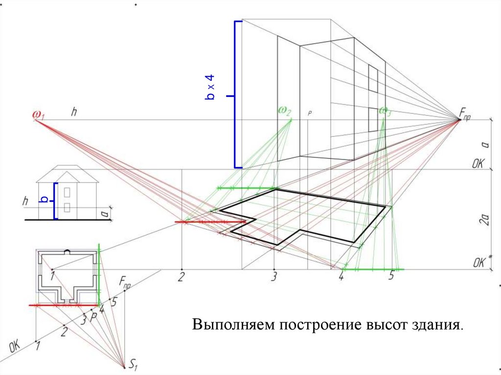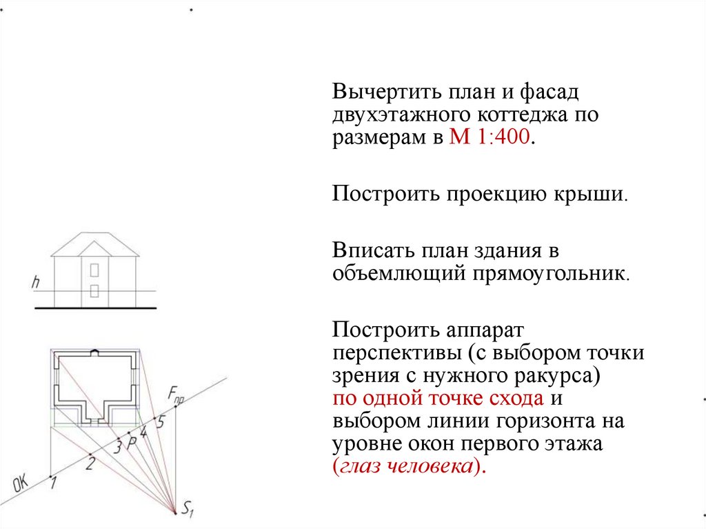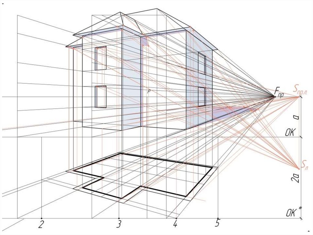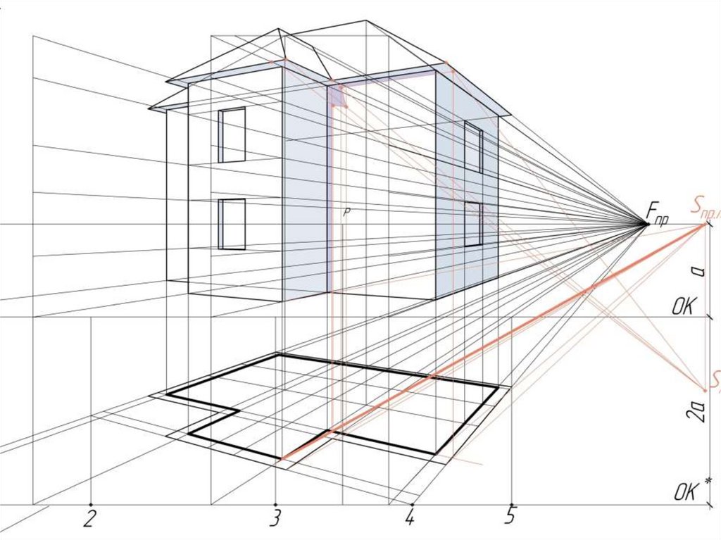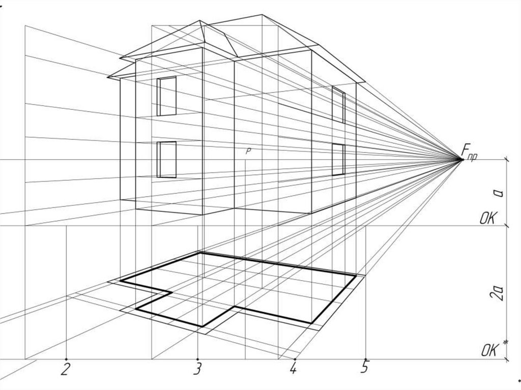 2. Построить аппарат перспективы (с выбором точки зрения