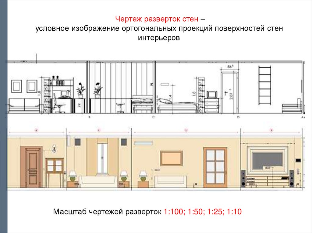 Чертеж разверток стен –условное изображение ортогональных проекций поверхностей стен