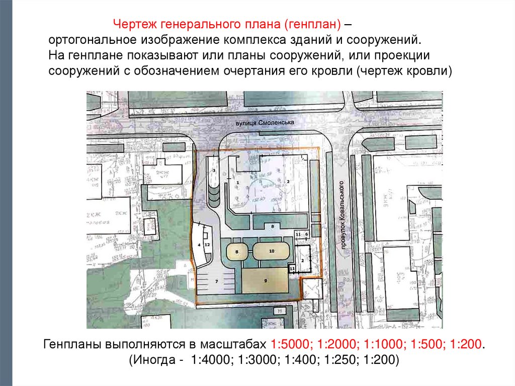 Генпланы выполняются в масштабах 1:5000; 1:2000; 1:1000; 1:500; 1:200.