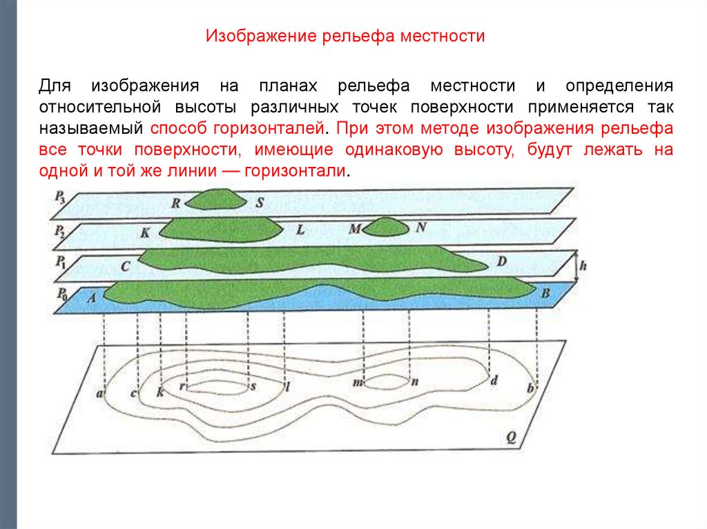 Изображение рельефа местностиДля изображения на планах рельефа местности и определения