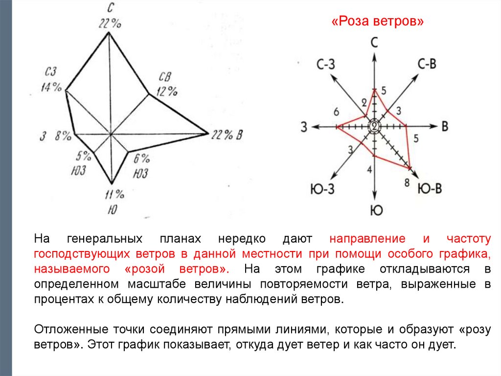 «Роза ветров»На генеральных планах нередко дают направление и частоту