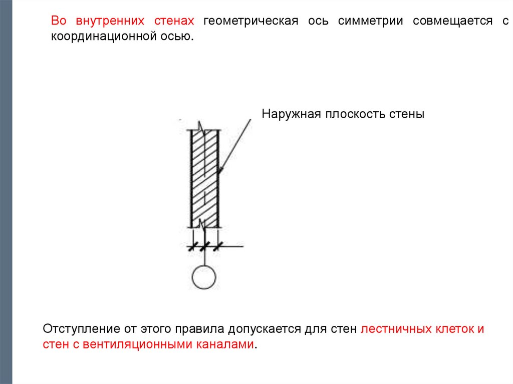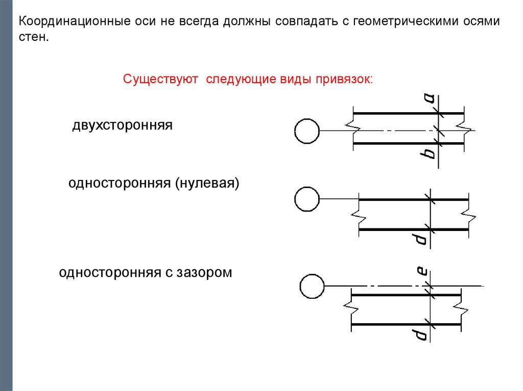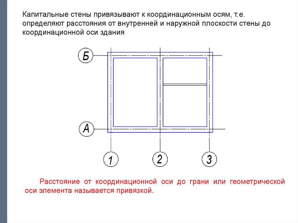 перегородок, привязку внутренних стен к координационным осям, перегородок